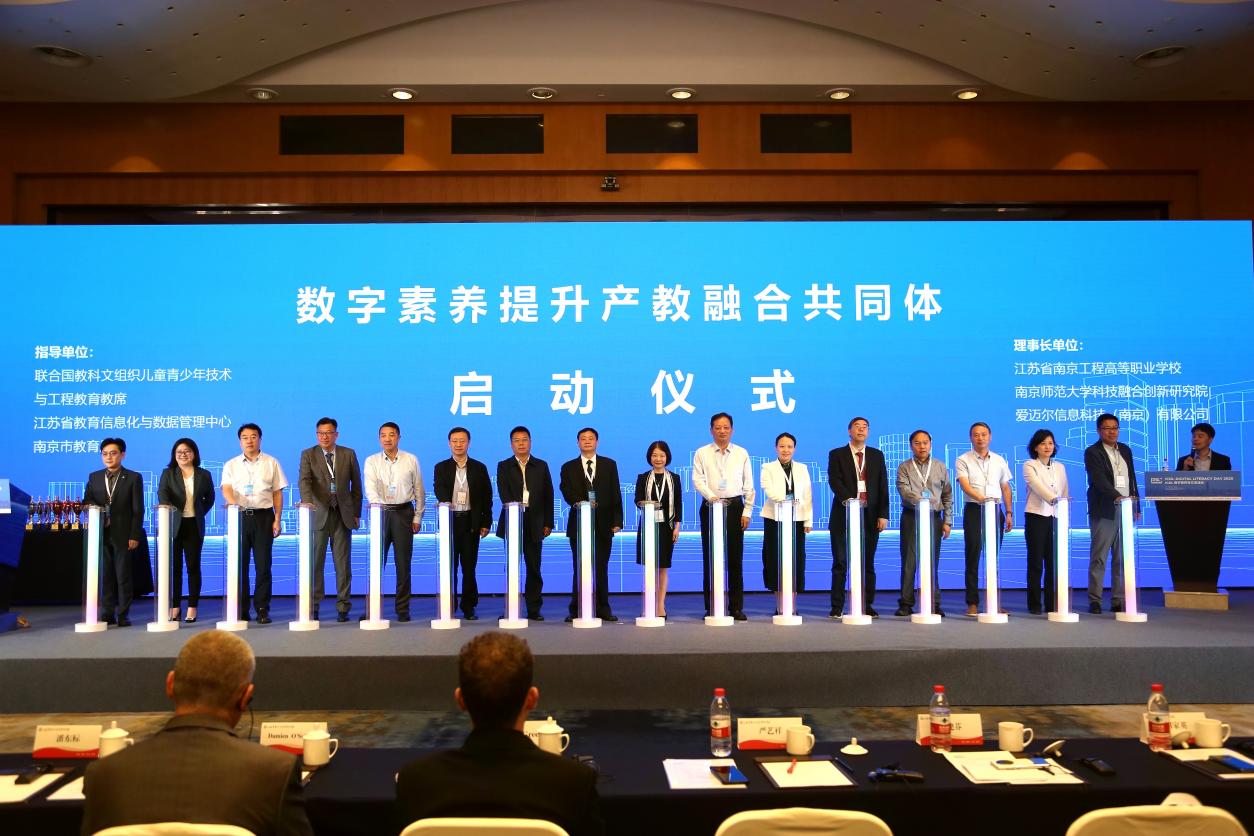 活动期间,由江苏省南京工程高等职业学校、南京师范大学科技融合创新研究院、爱迈尔信息科技(南京)有限公司共同牵头,联合相关行业企业、职业院校、科研机构,组建成立“数字素养提升产教融合共同体”,这是为培养适应数字时代高素质技能人才而搭建的协同平台,相关领导参加了启动仪式。
