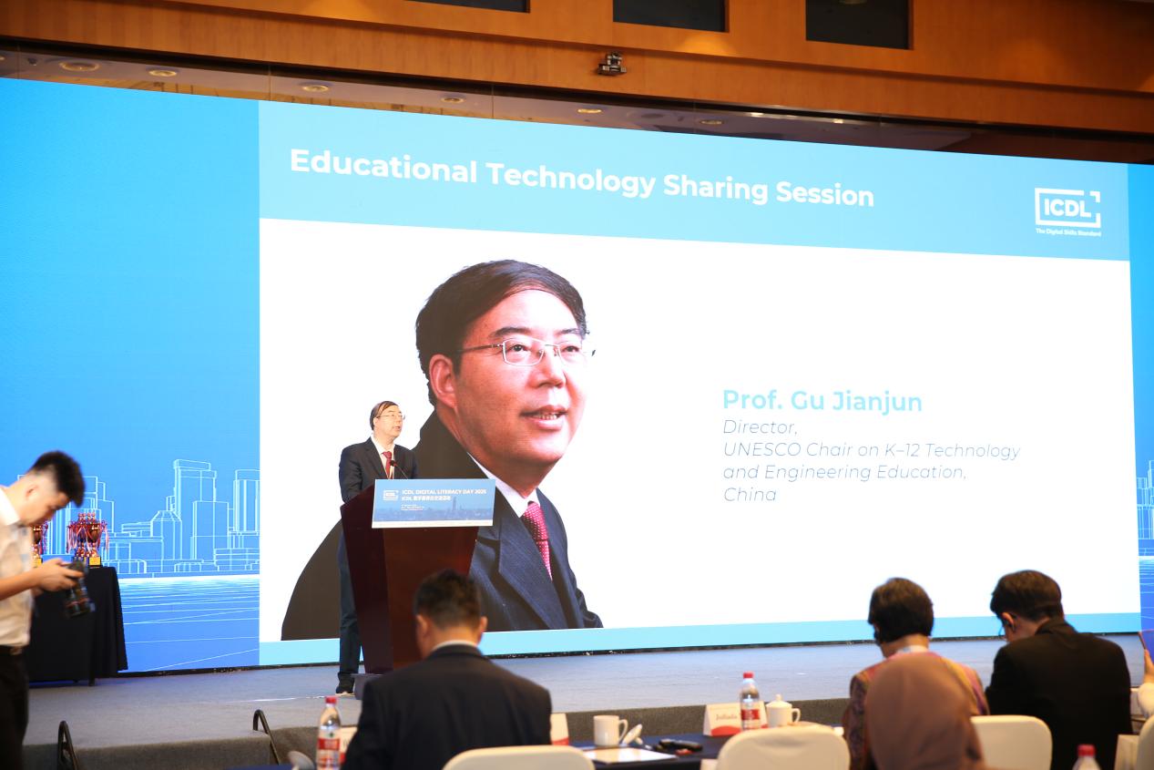 联合国教科文组织儿童青少年技术与工程教育教席主持人、南京师范大学教育科学学院博士生导师顾建军教授受邀做题为《人工智能赋能青少年技术与工程教育》的报告。他指出,人工智能是引领科技革命的战略性技术,正在深刻重塑教育生态,同时也是推动教育数字化转型、培养数智时代新质人才的核心驱动力。他特别介绍了其主持的联合国教科文组织儿童青少年技术与工程教育教席,这也是联合国教科文组织在该领域成立的首个面向K12的全球性教席。他表示,期待与各方开展广泛合作,共同应对人工智能给教育带来的机遇与挑战,并与ICDL等组织在青少年数字素养和技术工程教育方面深化合作,共同探索在全球视野下数字教育的新路径。
