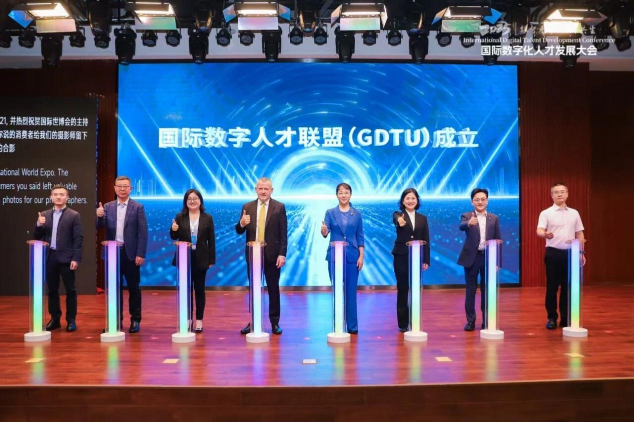 认知升级后,大会进入“新行动”篇章,3个行业级动作将推动从知到行的跨越:国际数字人才联盟(GDTU),在ICDL总部CEO Damien O’ Sullivan、ICDL亚洲地区CEO吴天、ICDL中国地区负责人蓝霄宇、江苏开放大学副校长罗逾兰、南京人力资源行业协会秘书长王新军、南京市企业数字化转型研究会秘书长解奉波、大任智库总经理何伟、江苏漫修(苏州)律师事务所合伙人张敏八位重磅嘉宾的共同推杆揭幕下,正式宣告成立。联盟以 “打破数字人才发展的地域壁垒与标准差异,整合全球资源构建开放、协同、共生的数字人才生态,为全球数字化转型提供坚实人才支撑” 为宗旨,未来将以“标准协同、培育创新、认证互通、生态共建”四大维度为抓手,着力搭建跨境人才数据库、共享多元培育资源、制定国际互认的能力标准,为全球数字化转型注入人才动能。