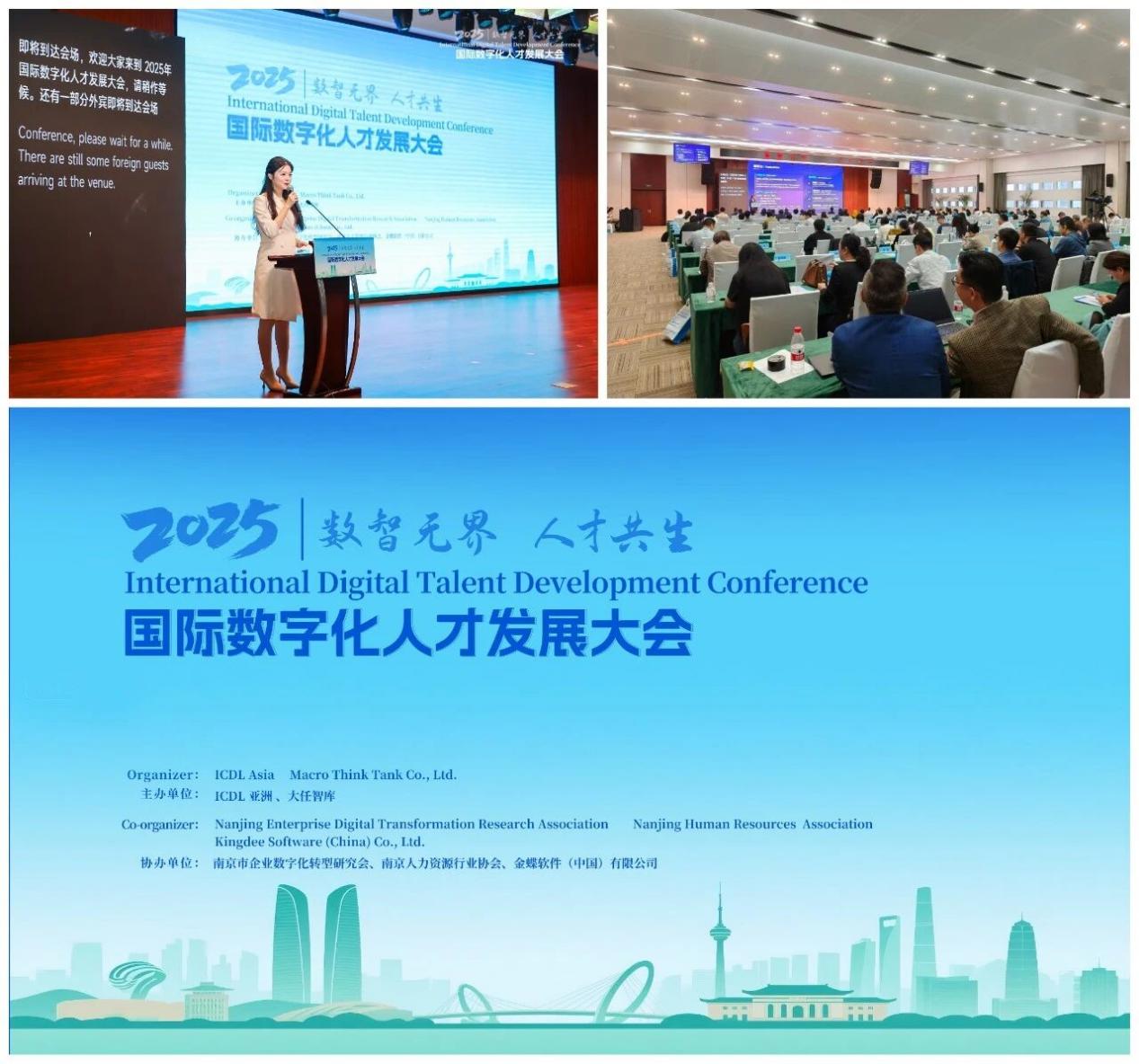 金秋十月,全球数字化人才领域的目光聚焦南京。10月15日,2025“数智无界・人才共生——国际数字化人才发展大会”在南京雨花软件谷会议中心盛大召开。本次大会由大任智库与ICDL主办,南京市企业数字化转型研究会、南京人力资源行业协会协办。大会汇集了120多位来自新加坡、泰国、不丹、柬埔寨等十多个国家的数字经济相关部门官员,以及新加坡淡马锡理工学院、菲律宾德拉萨大学、泰晤士国际学院、新加坡国立大学等高校的专家代表,还有100多位国内知名企业高管及人力资源专家共同出席。大会以“数智无界・人才共生”为主题,全面展示了AI时代人力资源创新的“全球解法”。